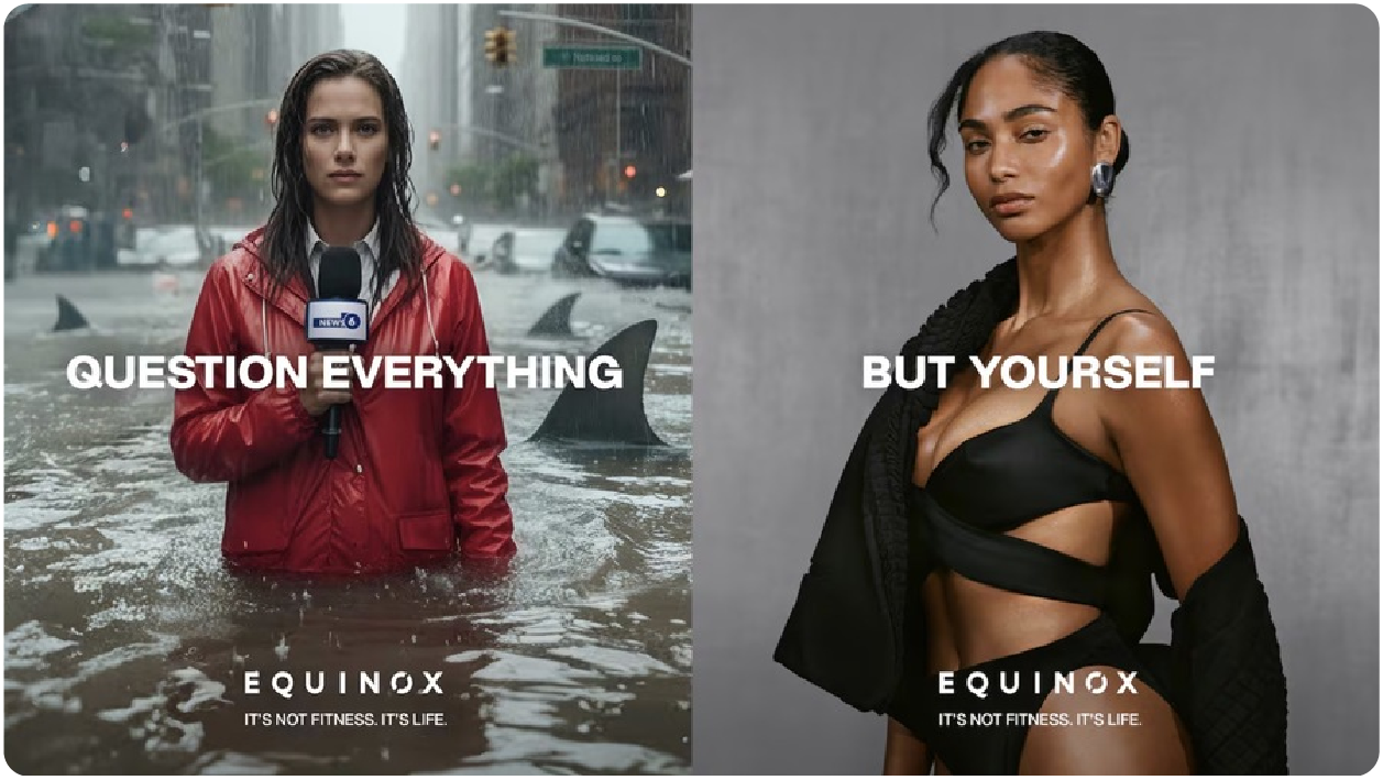 ๋๋ค. ์ผ์ชฝ์๋ ๋นํ์ค์ ์ธ AI ์์ฑ ์ด๋ฏธ์ง์ 'Question Everything(๋ชจ๋ ๊ฒ์ ์๋ฌธ์ ํ์ด๋ผ)', ์ค๋ฅธํธ์๋ ์ค์ ๋